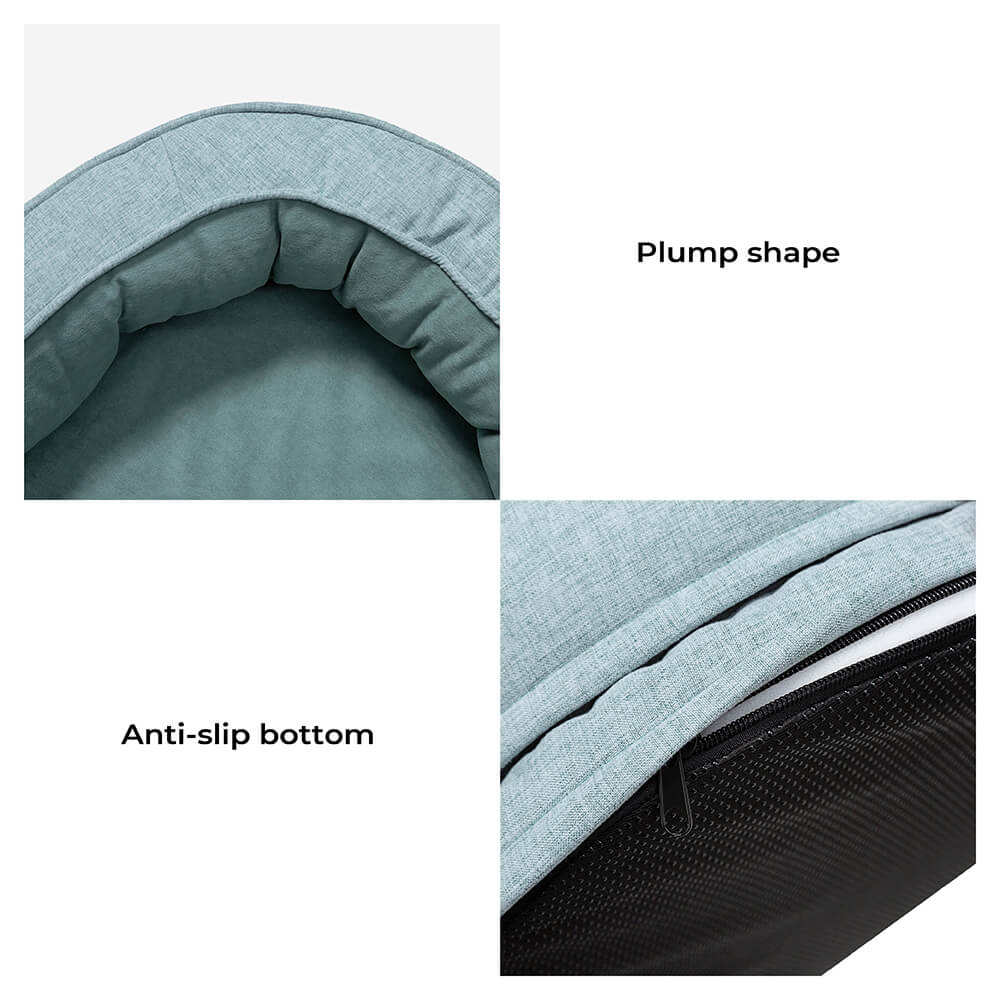 Custom luxury donut dog bed with orthopedic memory foam, removable washable cover, and anti-slip base for dogs of all sizes.