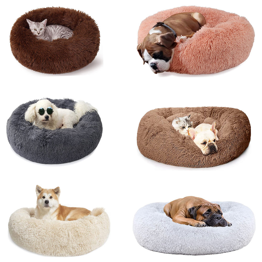 Eco-friendly luxury dog bed with faux fur material, donut design, and washable cover for outdoor and indoor comfort.