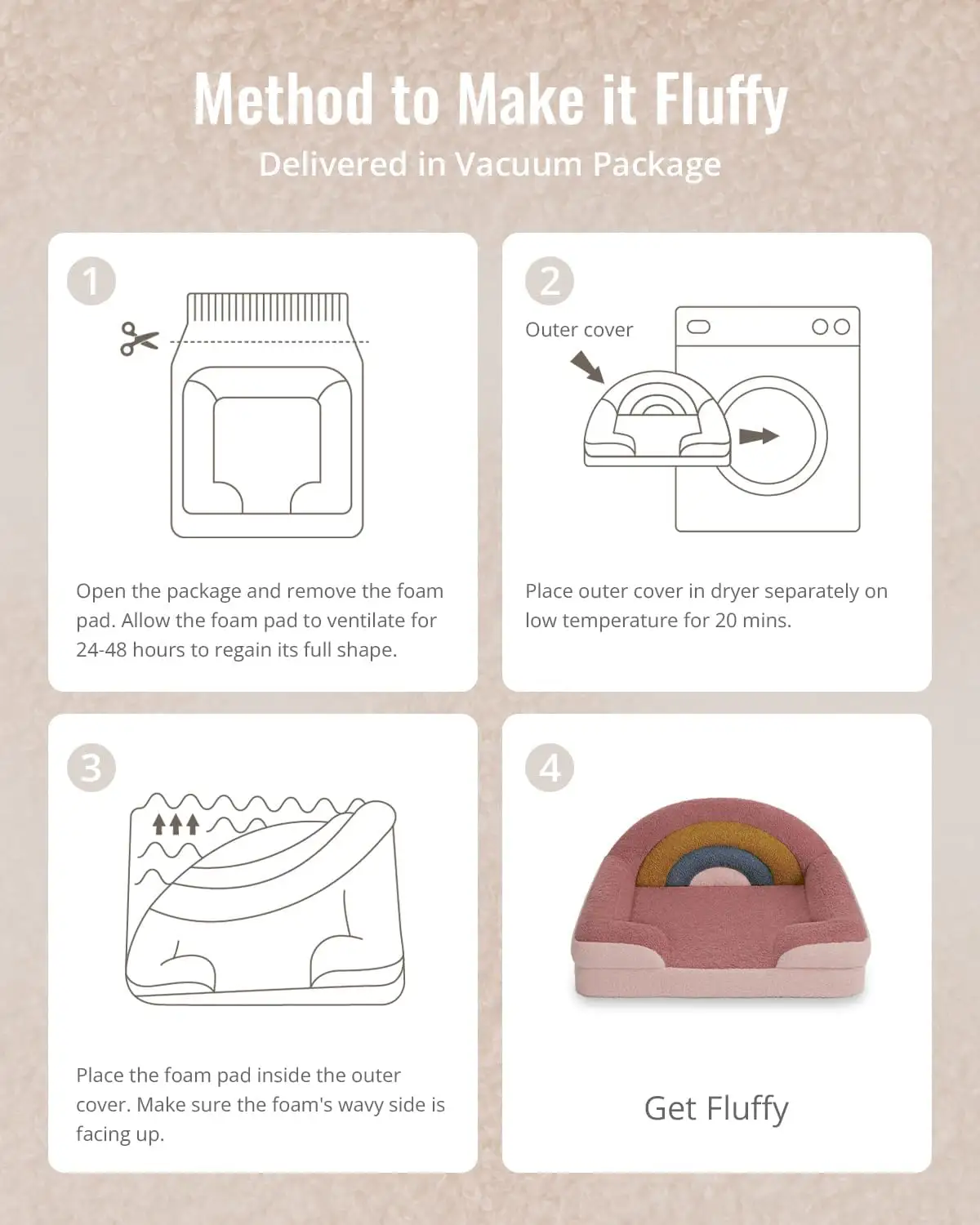 Fluffy orthopedic rectangle dog bed with bolstered sides and removable washable cover, perfect for medium-sized pets.